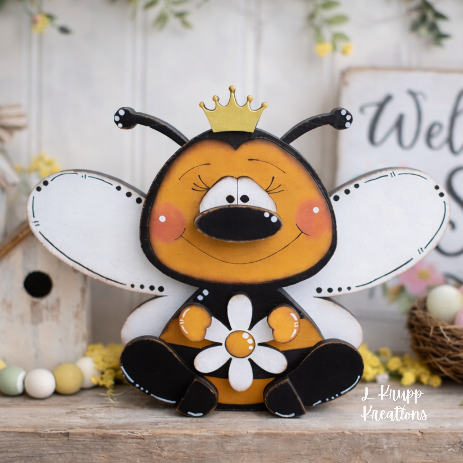 Hand-painted and full of personality, the Queen Bee is one of the sweetest little pieces in the shop. Sheβs designed to bring a little buzz to shelves, tiered trays, and cozy corners.