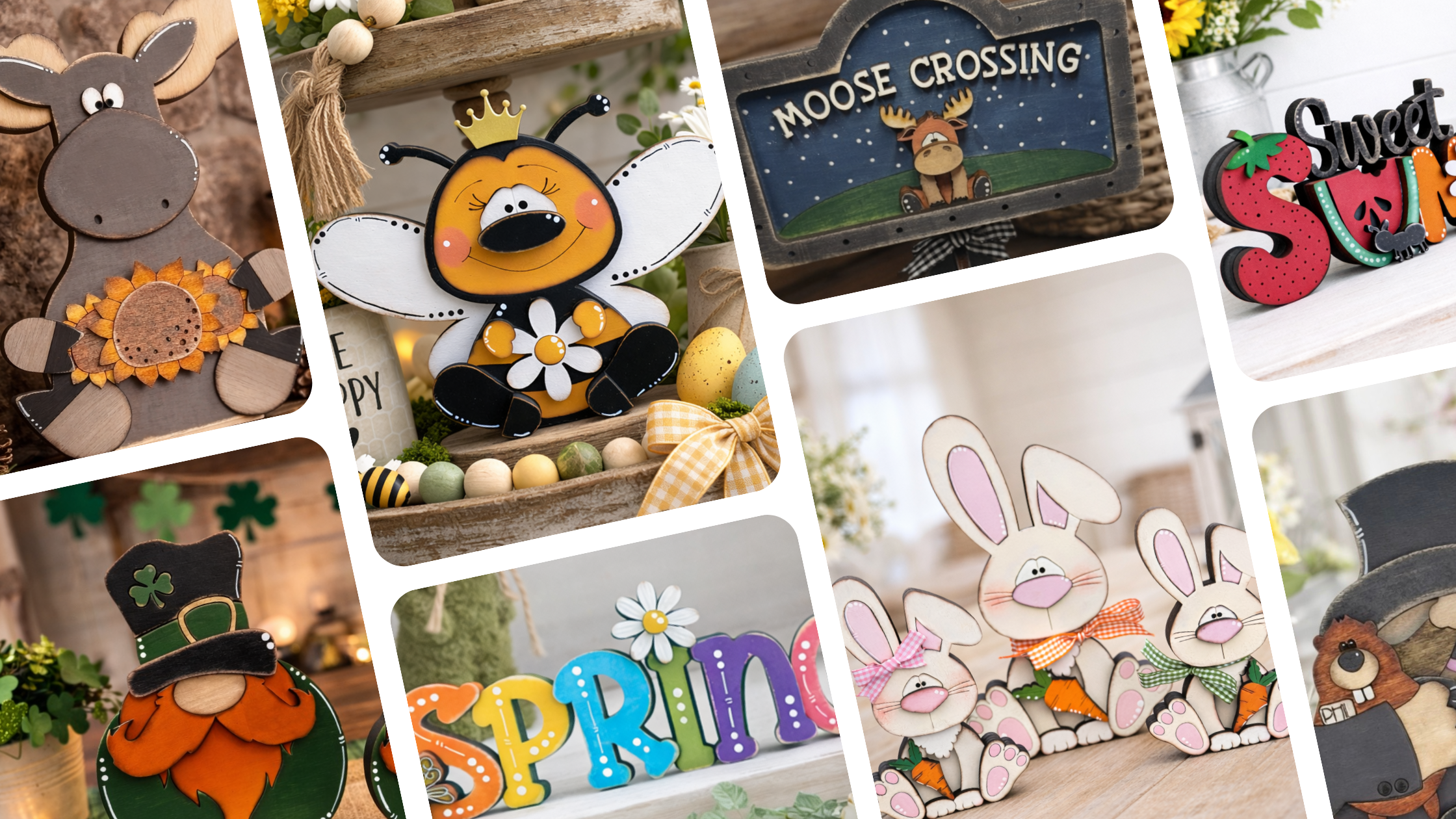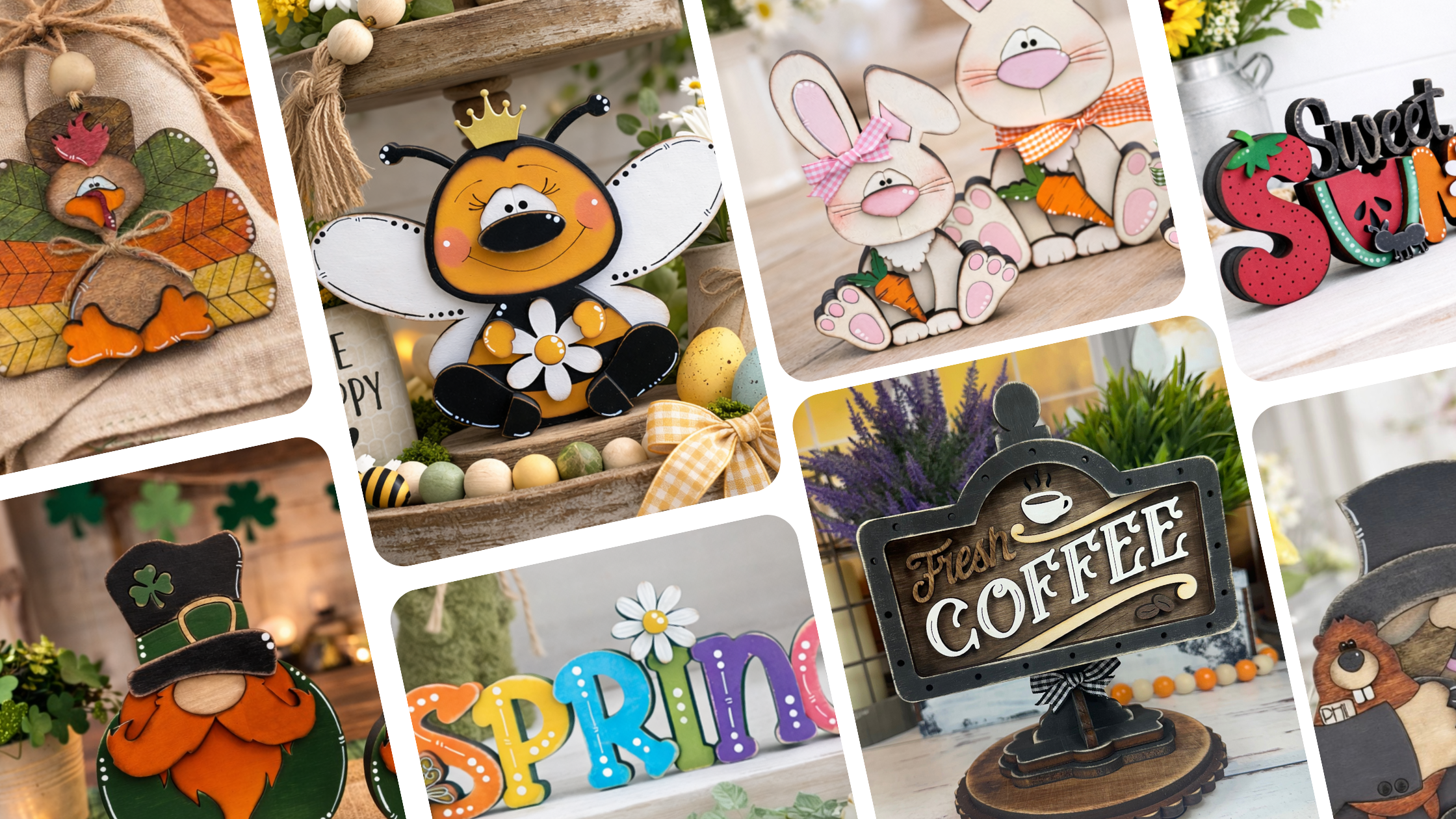 Chunky shelf sitters, seasonal decor, custom pieces and more.
